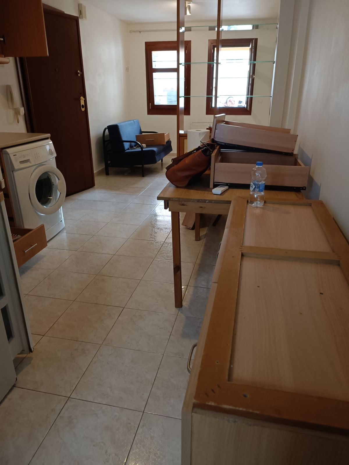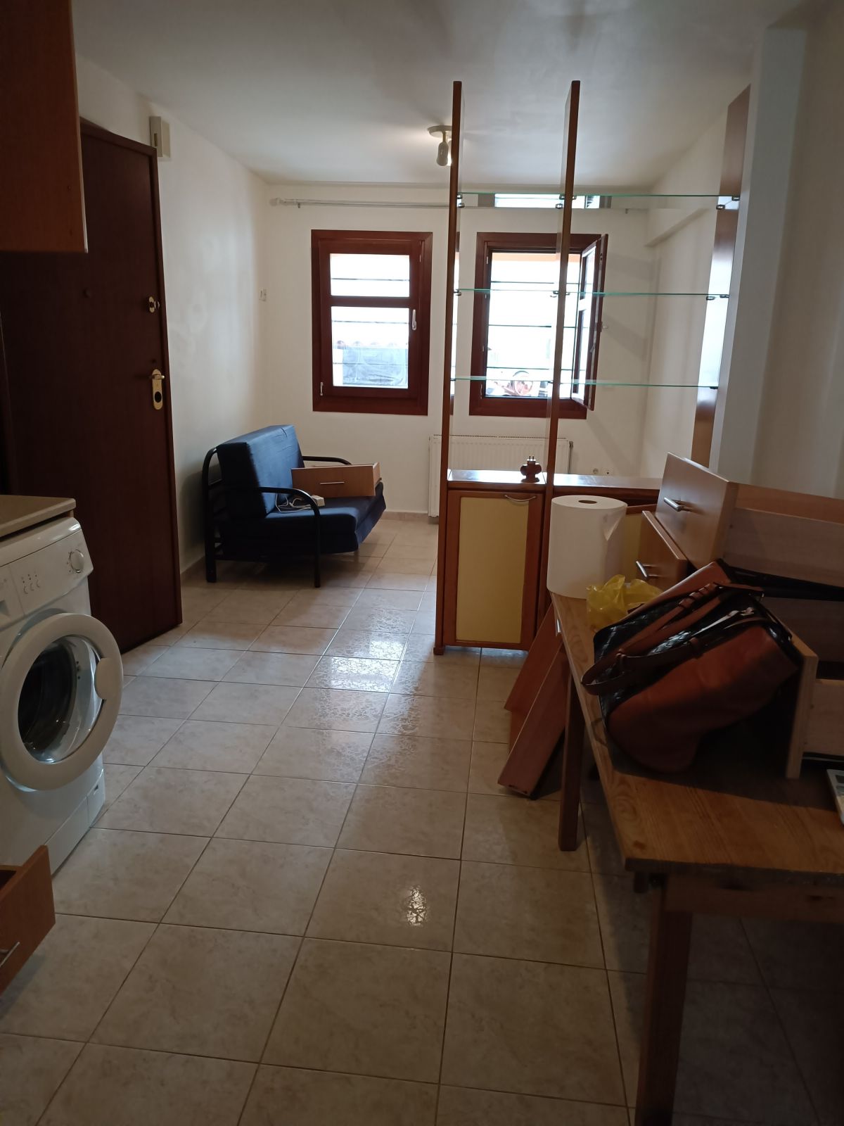 Ενιαίος χώρος με καναπέ-κρεβάτι,ντουλάπα, κουζίνα εξοπλισμένη με ηλεκτρικές συσκευές(πλυντήριο ρούχων,ψυγείο,φουρνάκι) και 1 μπάνιο.